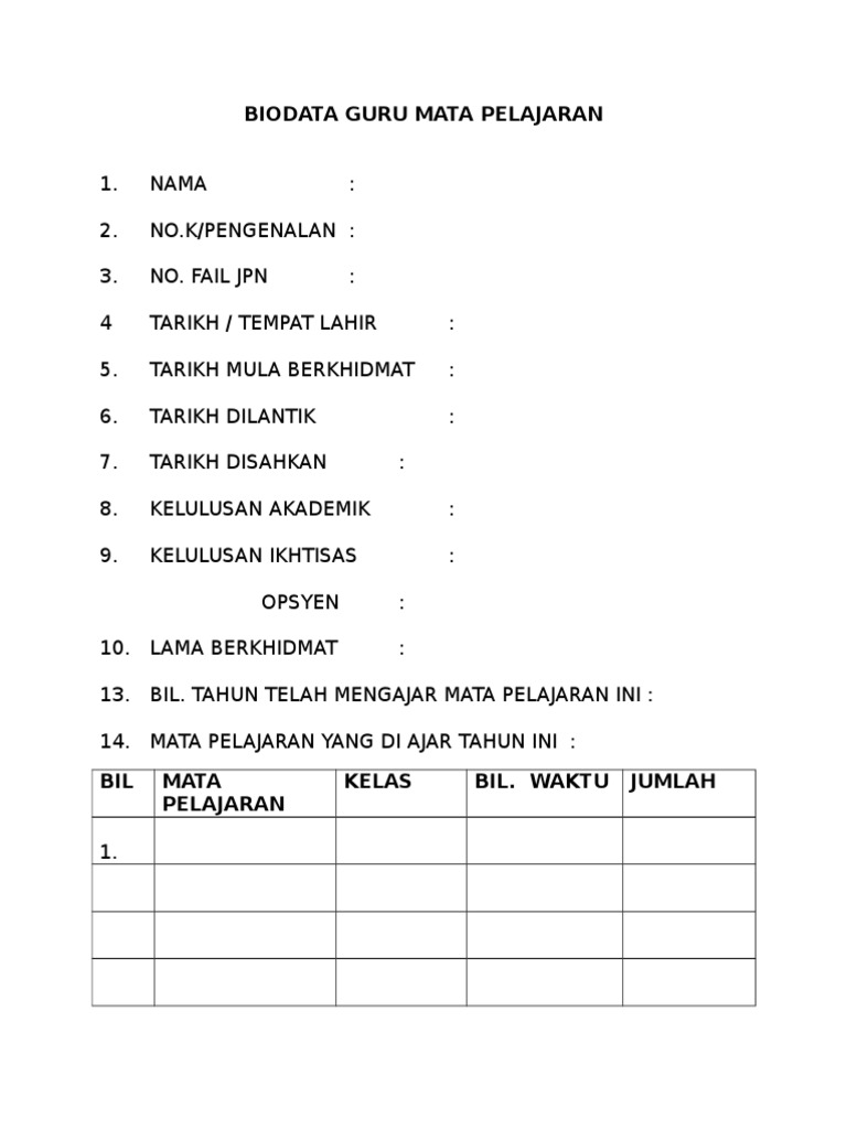 Biodata forms give a summary of your personal details, educational details, and work experience details in a simple form. You must carefully choose a professional format. Format biodata peserta guru pembelajar (gp). Check out our biodata form and template! Biodata format is a simple version of the resume.